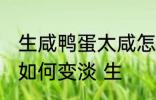 1、准备一盆清水,把咸鸭蛋连壳放进去,泡在里面,每天把水换一下,大概一周左右,咸鸭蛋的咸度就会降低,这个时候就可以煮熟食用了。2、 ....